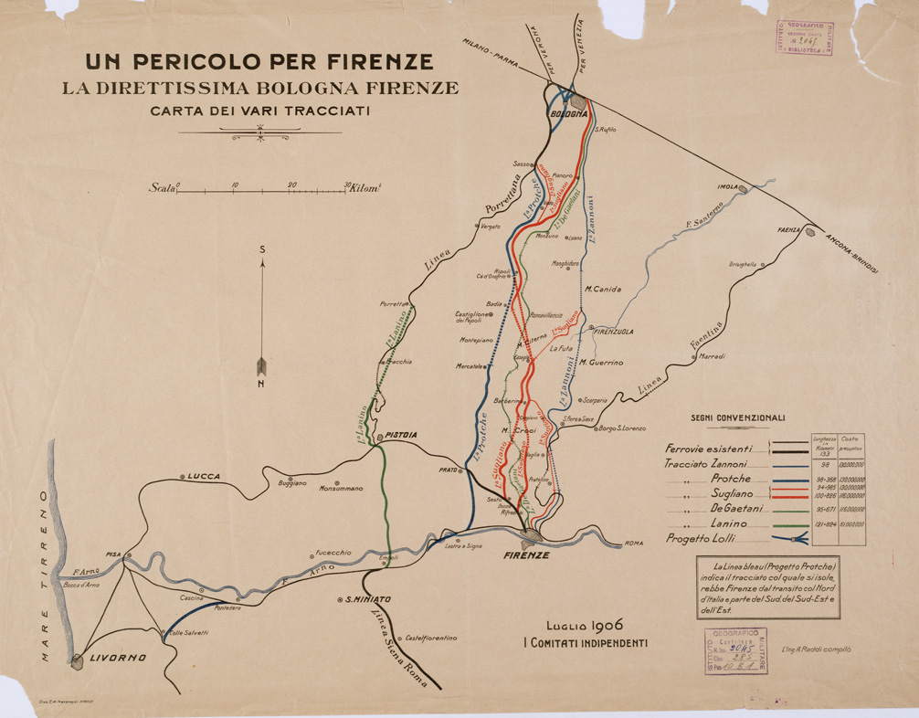 UN PERICOLO PER FIRENZE LA DIRETTISSIMA BOLOGNA - FIRENZE - CARTE DEI VARI TRACCIATI.