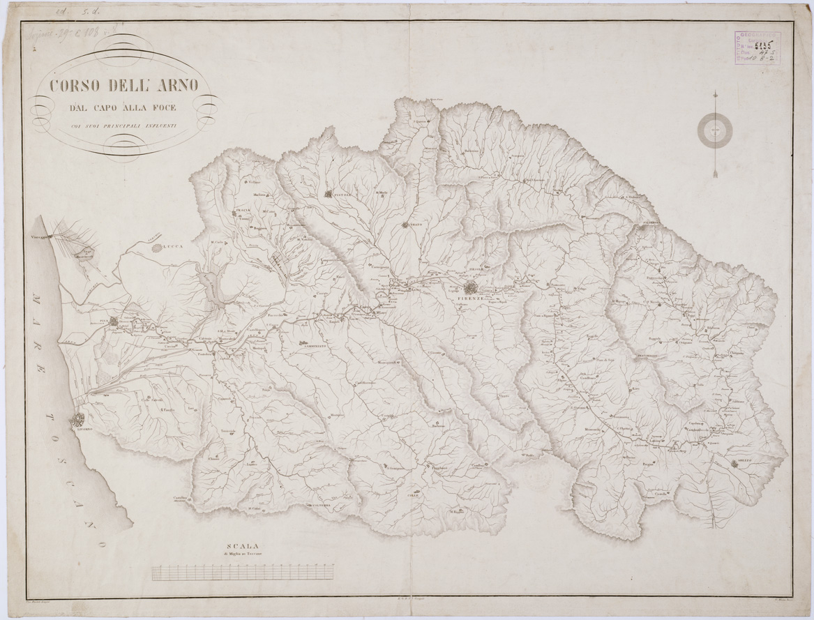 CORSO DELL'ARNO DAL CAPO ALLA FOCE COI SUOI PRINCIPALI INFLUENTI.