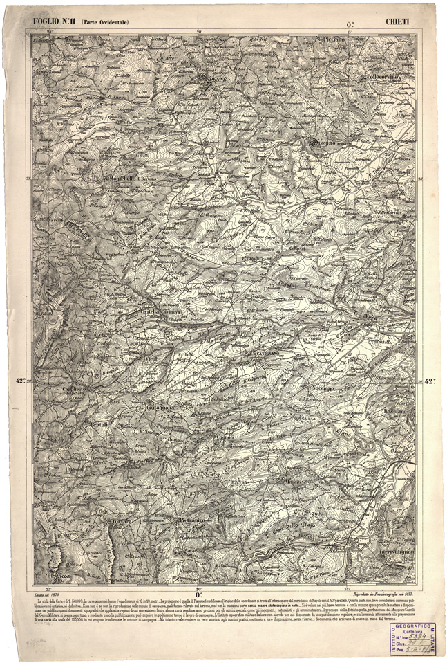 CARTA DELL' ITALIA MERIDIONALE EDITA DALL'ISTITUTO TOPOGRAFICO MILITARE ITALIANO - Foglio 11 parte occidentale - Chieti