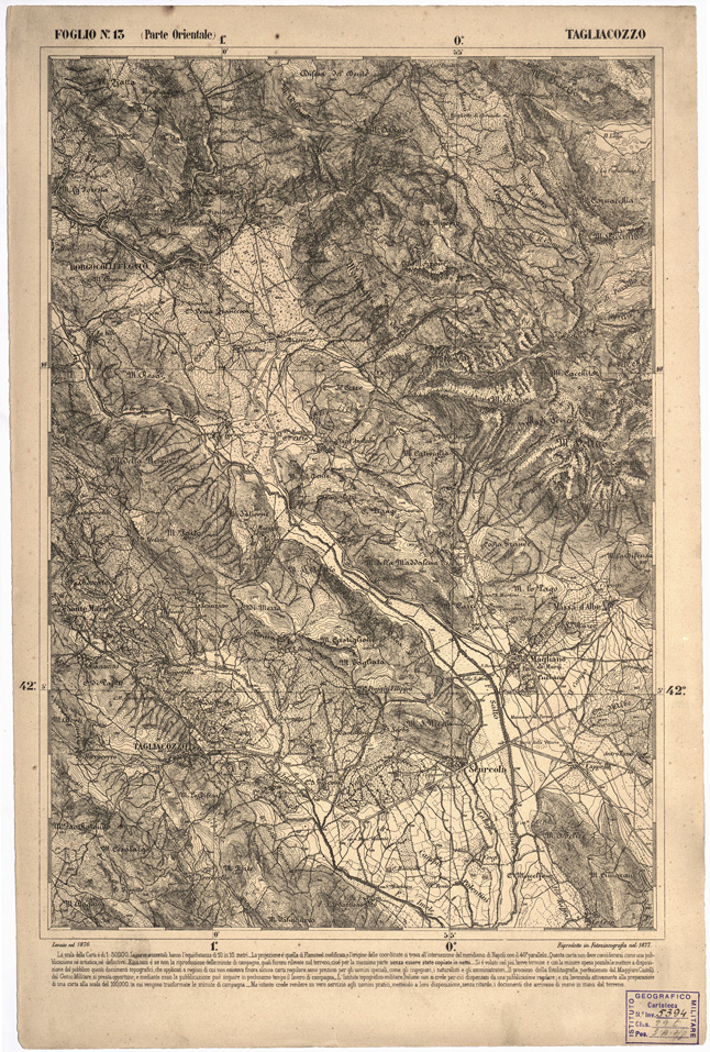I rilevamenti topografici per la realizzazione della “Carta d´Italia&lrquo” iniziarono nel 1878: si trattava di un´opera così importante e lodevole che meritò la consapevole attenzione, non solo degli addetti ai lavori e delle categorie professionali coinvolte, ma anche delle più alte autorità del Regno.