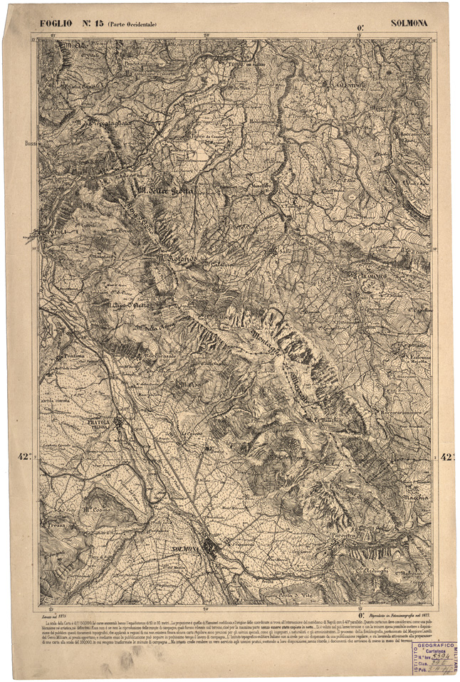 CARTA DELL' ITALIA MERIDIONALE EDITA DALL'ISTITUTO TOPOGRAFICO MILITARE ITALIANO - Foglio 15 parte occidentale - Solmona