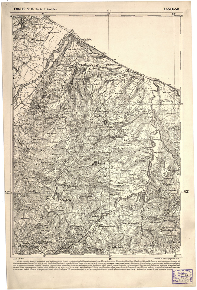 CARTA DELL' ITALIA MERIDIONALE EDITA DALL'ISTITUTO TOPOGRAFICO MILITARE ITALIANO - Foglio 16 parte orientale - Lanciano
