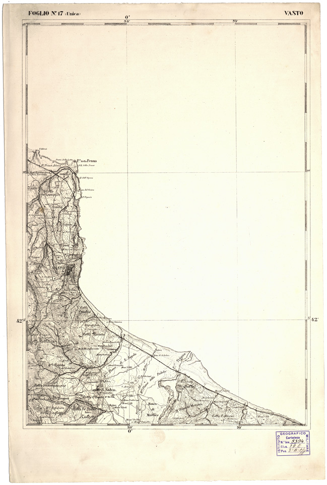 CARTA DELL' ITALIA MERIDIONALE EDITA DALL'ISTITUTO TOPOGRAFICO MILITARE ITALIANO - Foglio 17 - Vasto