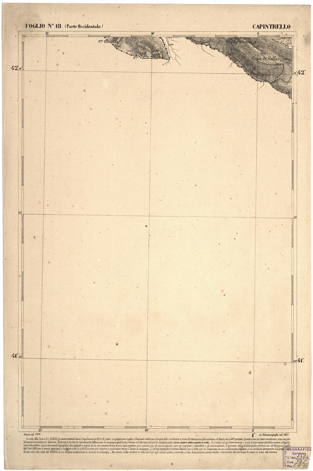 I rilevamenti topografici per la realizzazione della “Carta d´Italia&lrquo” iniziarono nel 1878: si trattava di un´opera così importante e lodevole che meritò la consapevole attenzione, non solo degli addetti ai lavori e delle categorie professionali coinvolte, ma anche delle più alte autorità del Regno.