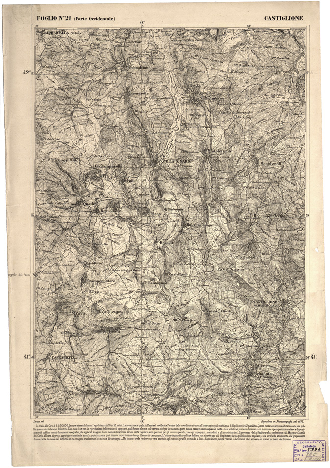 CARTA DELL' ITALIA MERIDIONALE EDITA DALL'ISTITUTO TOPOGRAFICO MILITARE ITALIANO - Foglio 21 parte occidentale - Castiglione