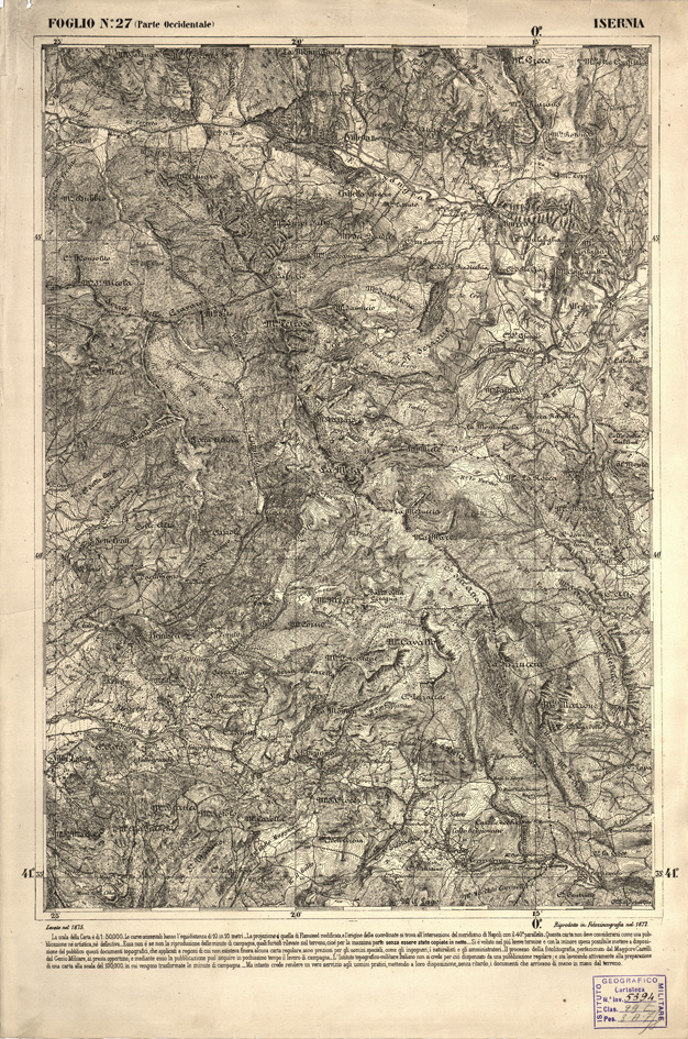 CARTA DELL' ITALIA MERIDIONALE EDITA DALL'ISTITUTO TOPOGRAFICO MILITARE ITALIANO - Foglio 27 parte occidentale - Isernia