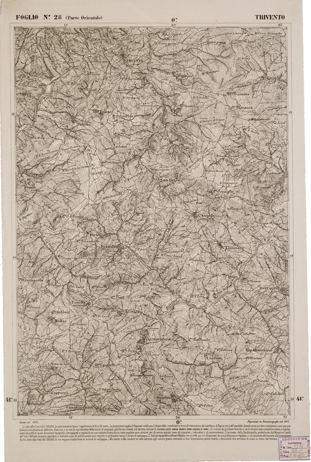 CARTA DELL' ITALIA MERIDIONALE EDITA DALL'ISTITUTO TOPOGRAFICO MILITARE ITALIANO - Foglio 28 parte orientale - Trivento
