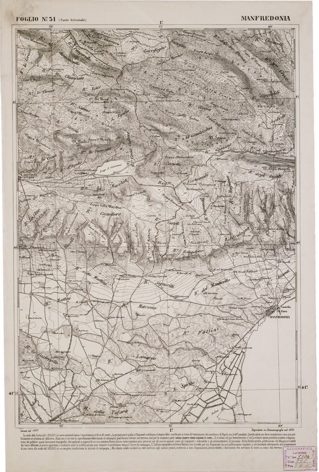 CARTA DELL' ITALIA MERIDIONALE EDITA DALL'ISTITUTO TOPOGRAFICO MILITARE ITALIANO - Foglio 31 parte orientale - Manfredonia
