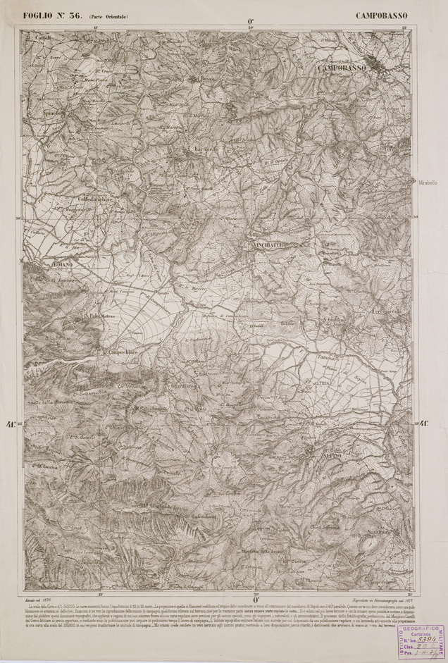 CARTA DELL' ITALIA MERIDIONALE EDITA DALL'ISTITUTO TOPOGRAFICO MILITARE ITALIANO - Foglio 36 parte orientale - Campobasso