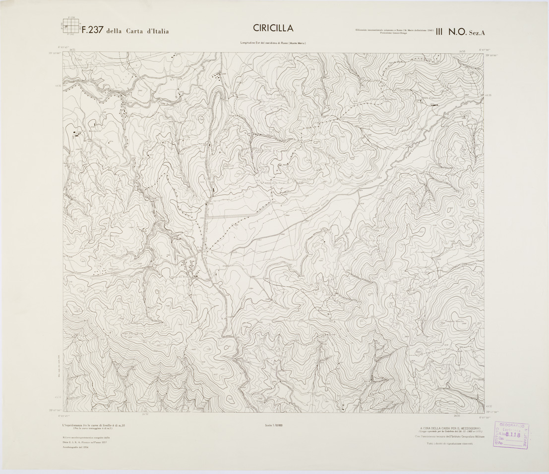 "Autore: Cassa per il Mezzogiorno I.G.M. Rappresentazione orografica a curve di livello."
