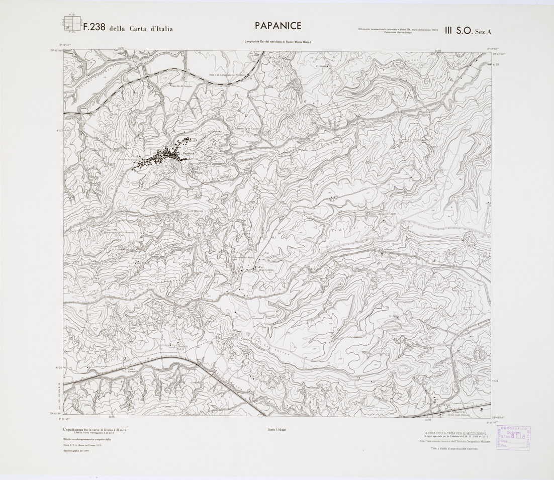 CARTA TOPOGRAFICA DELLA CALABRIA - Foglio 238 III S.O. SEZ.A - Papanice