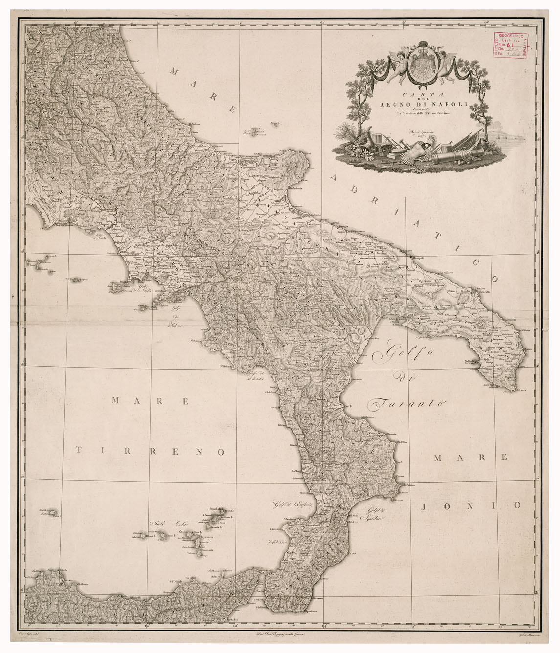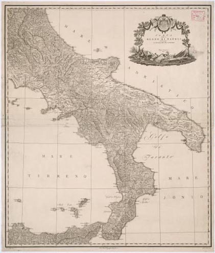 CARTA DEL REGNO DI NAPOLI INDICANTE LA DIVISIONE DELLE XIV SUE PROVINCIE. RIZZI ZANNONI, 1807