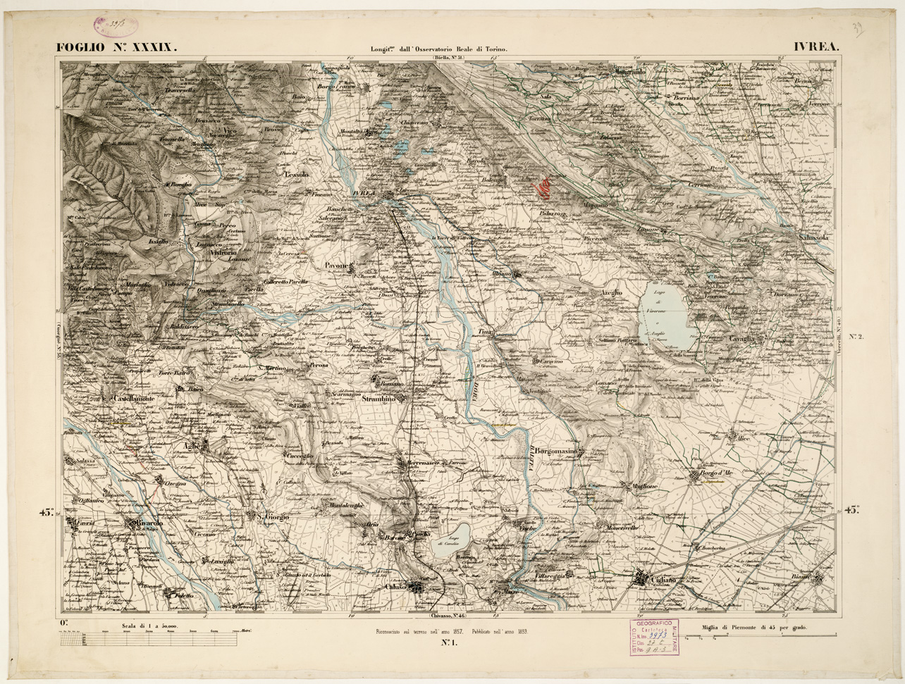 CARTA TOPOGRAFICA DEGLI STATI IN TERRAFERMA... - Foglio 39 - Ivrea