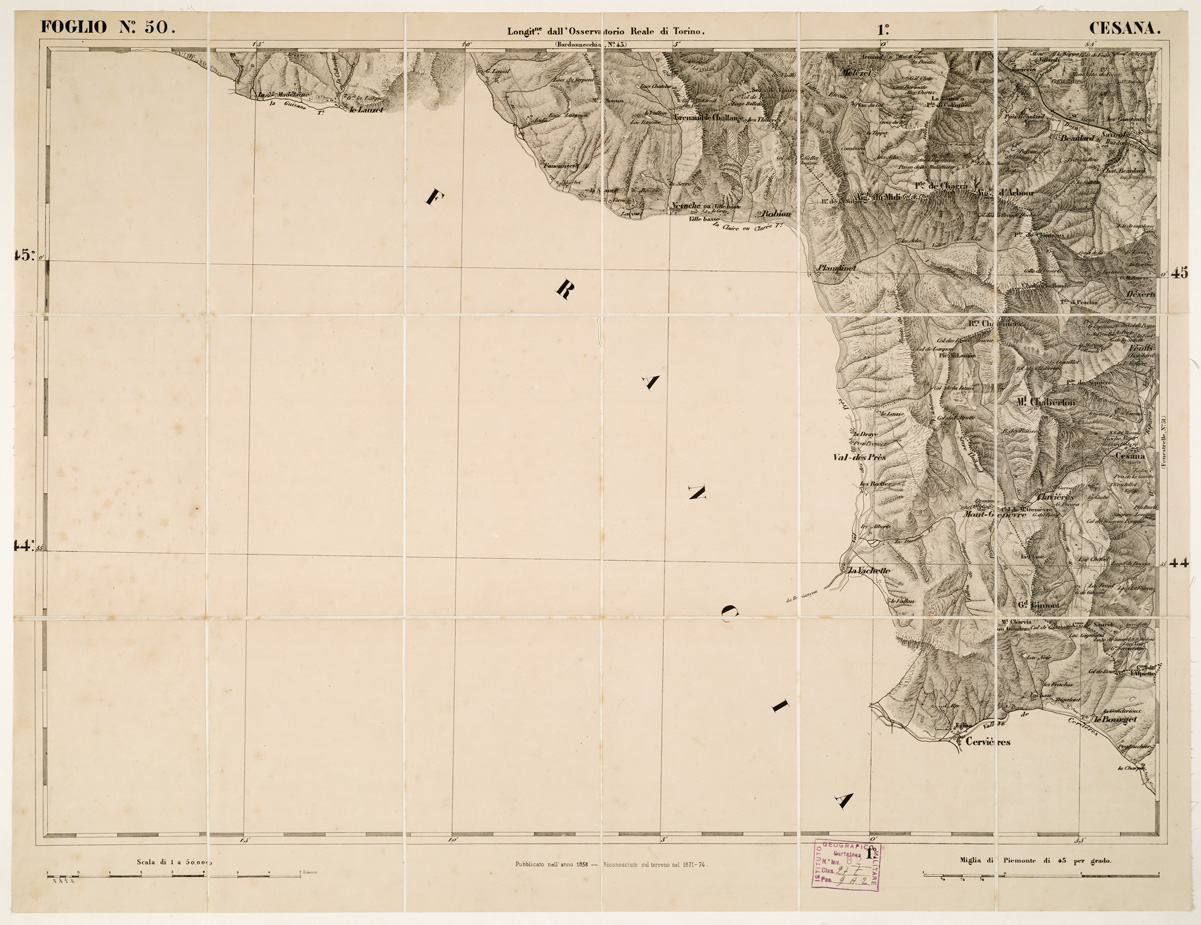 CARTA TOPOGRAFICA DEGLI STATI IN TERRAFERMA... - Foglio 50 - Cesana