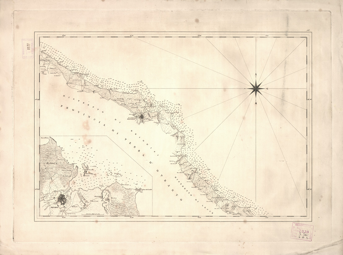 "Officio Topografico del Reame di Napoli. In basso a sinistra Brindisi e dintorni."