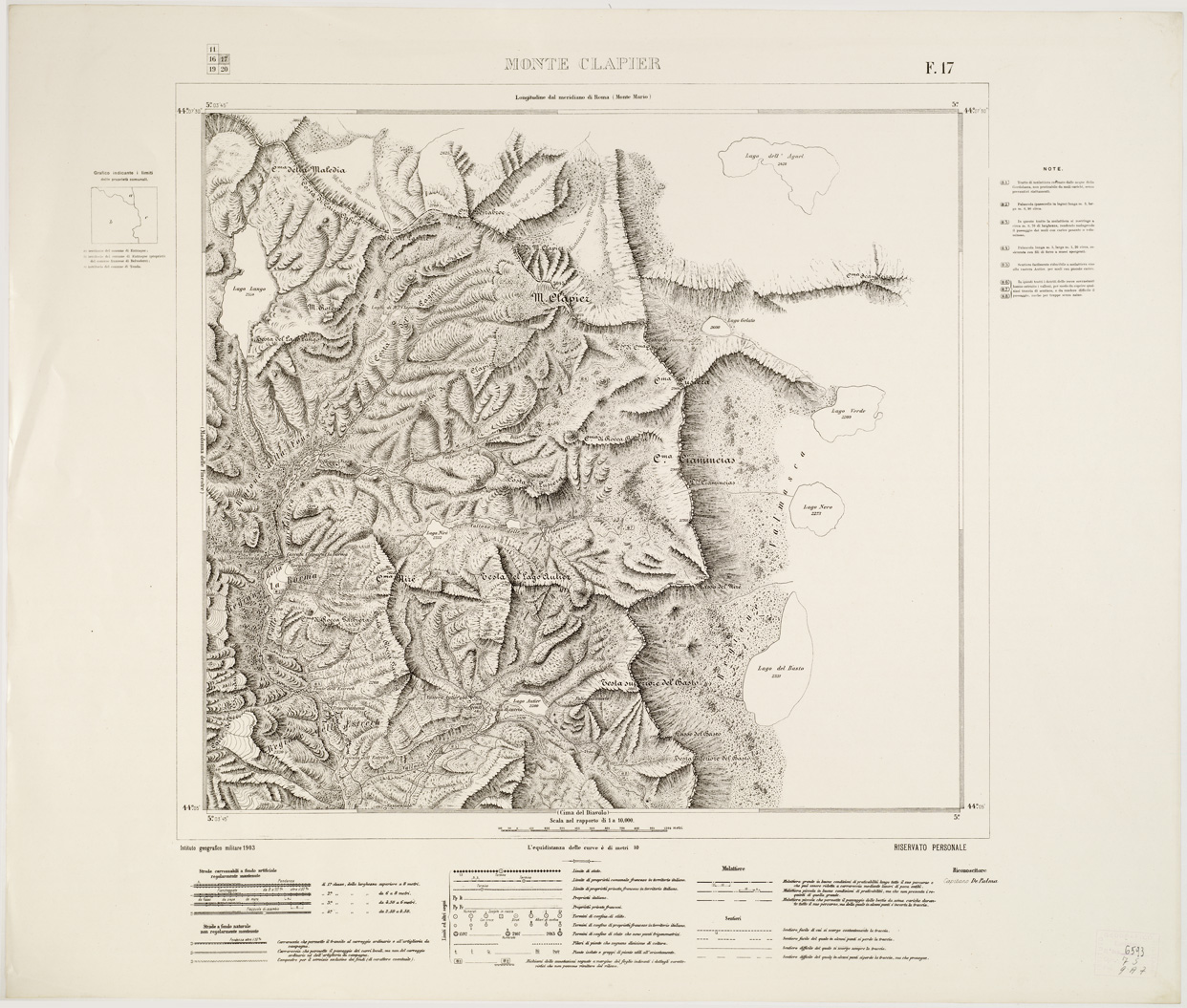 CARTA SPECIALE AL 10.000 DELLA FRONTIERA VERSO L'ALTO NIZZARDO - Foglio 17 - Monte Clapier