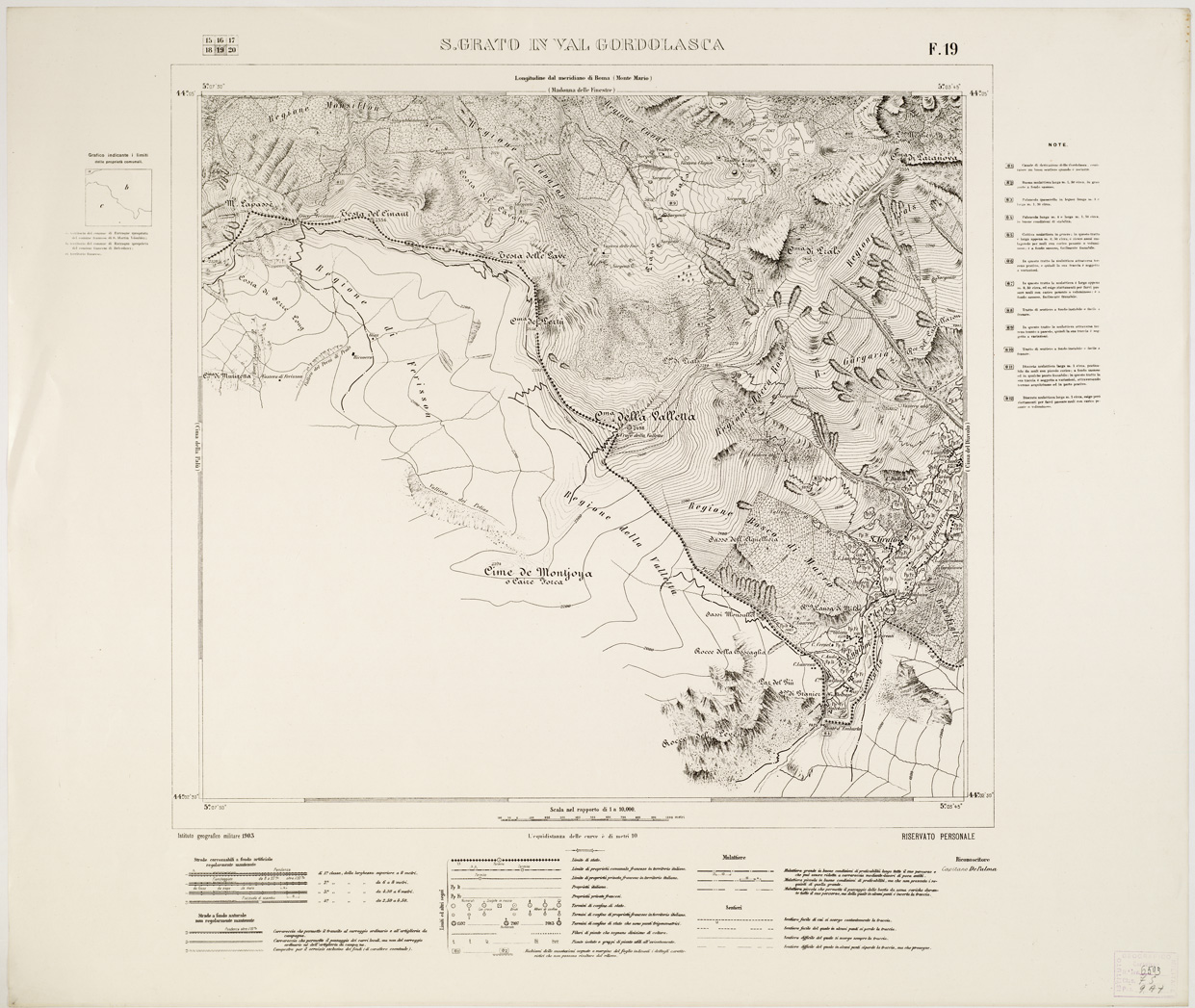 CARTA SPECIALE AL 10.000 DELLA FRONTIERA VERSO L'ALTO NIZZARDO - Foglio 19 - S. Grato in Val Gordolasca