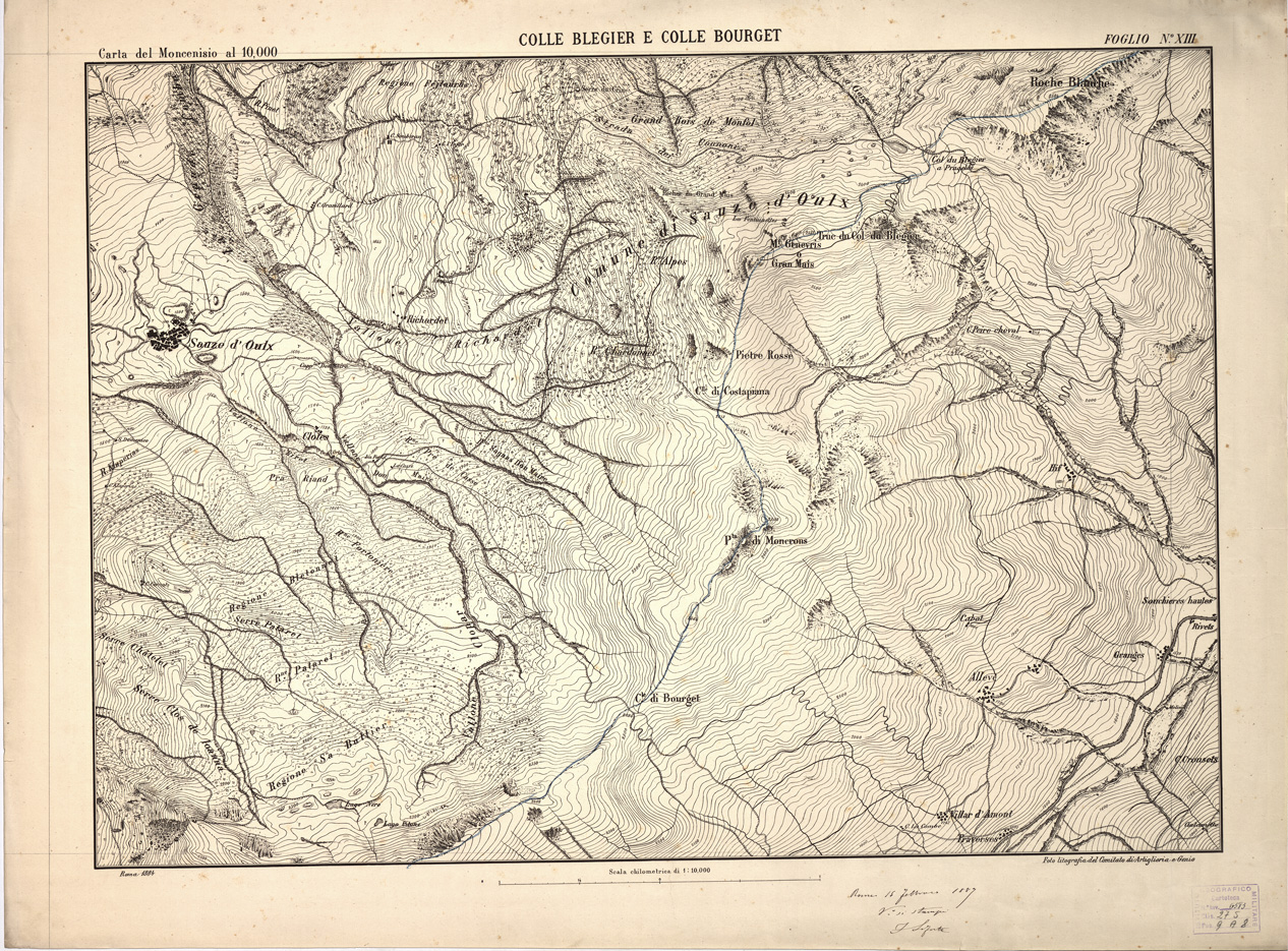 CARTA TOPOGRAFICA DEI FORTI DEL MONCENISIO, DI EXILLES E FENESTRELLE - Foglio 13 - Colle Blegier e Colle Bourget