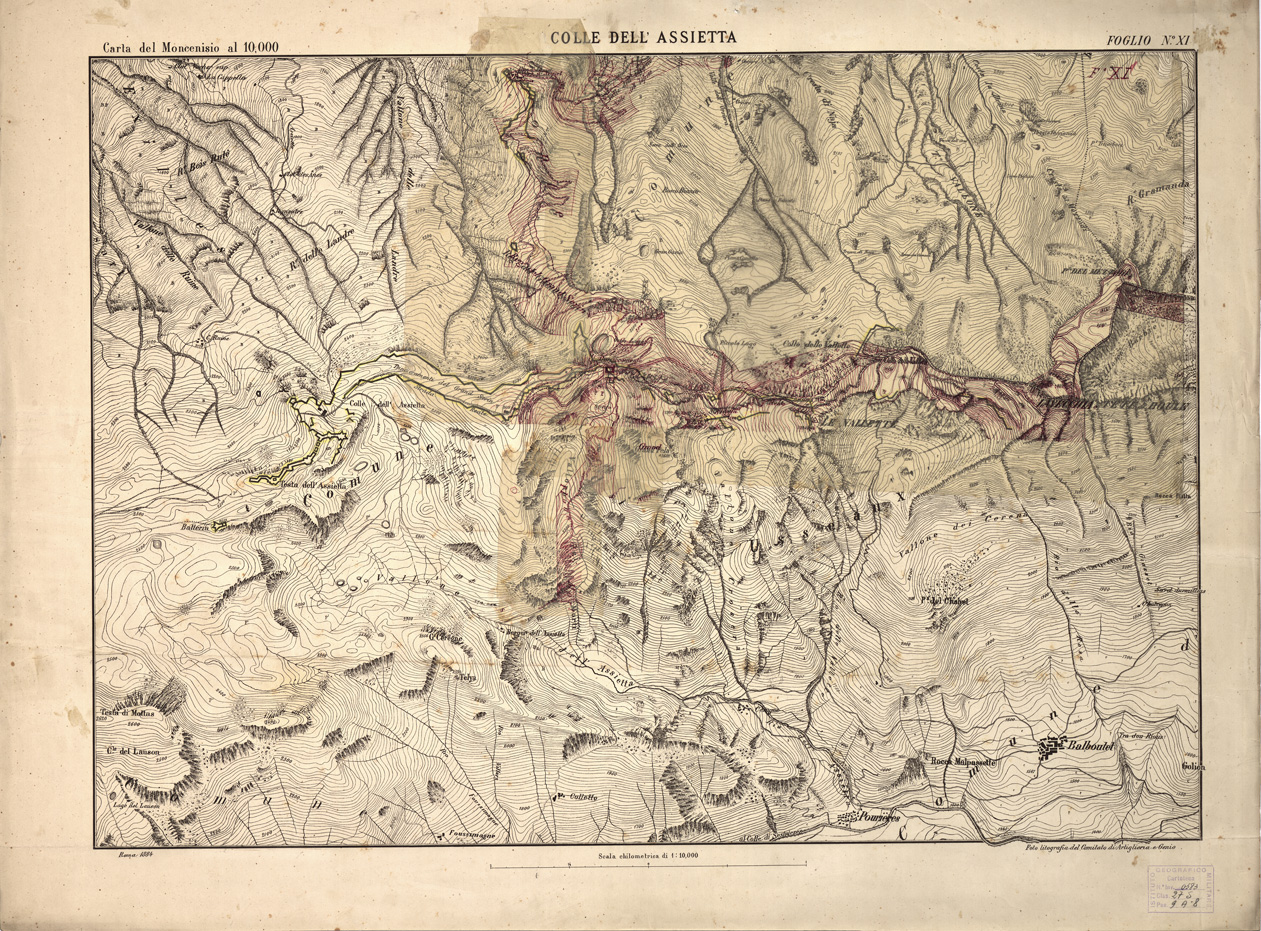 CARTA TOPOGRAFICA DEI FORTI DEL MONCENISIO, DI EXILLES E FENESTRELLE - Foglio 11 - Colle dell'Assietta (carta con velina)