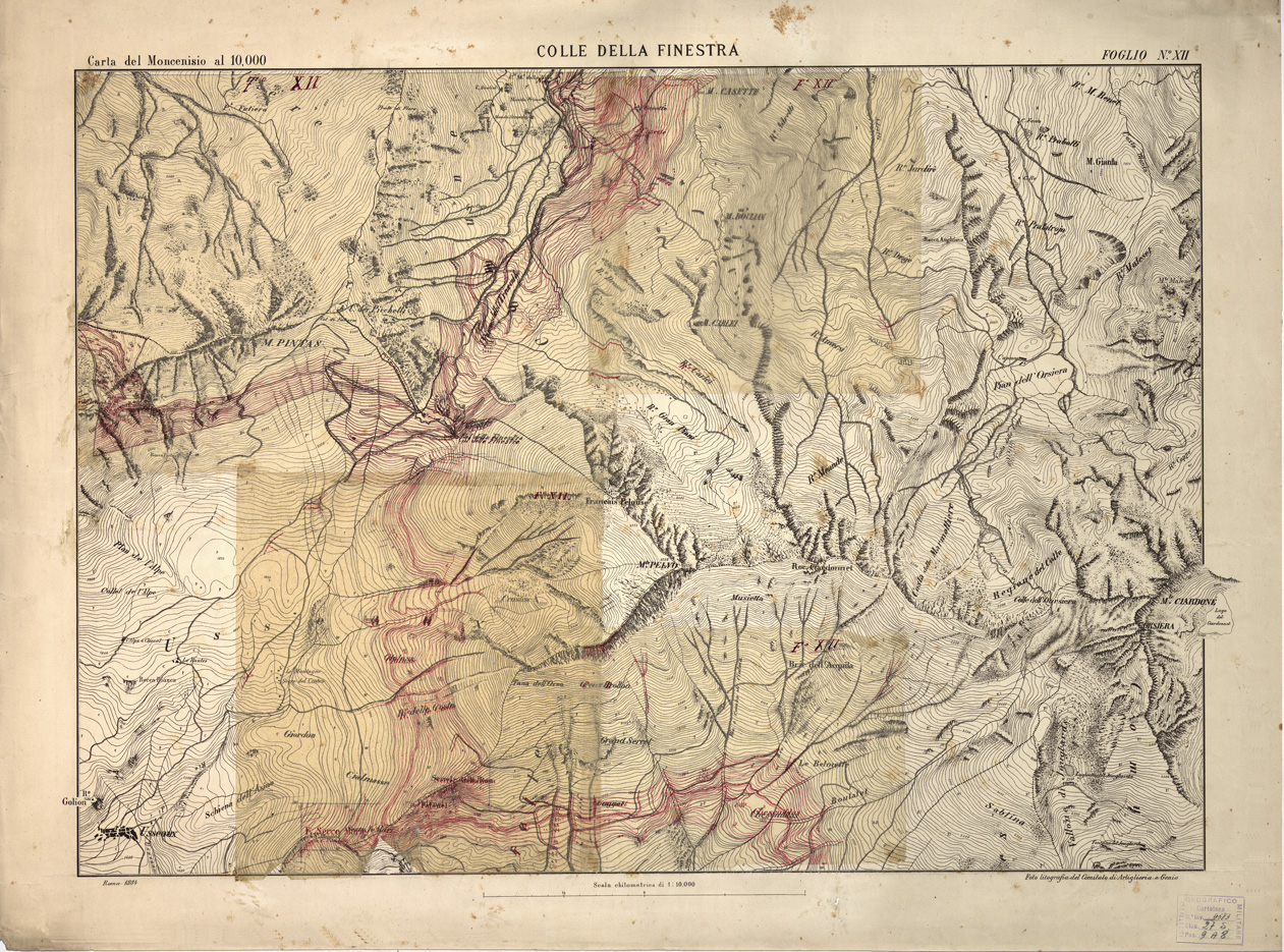 CARTA TOPOGRAFICA DEI FORTI DEL MONCENISIO, DI EXILLES E FENESTRELLE - Foglio 12 - Colle della Finestra (carta con velina)