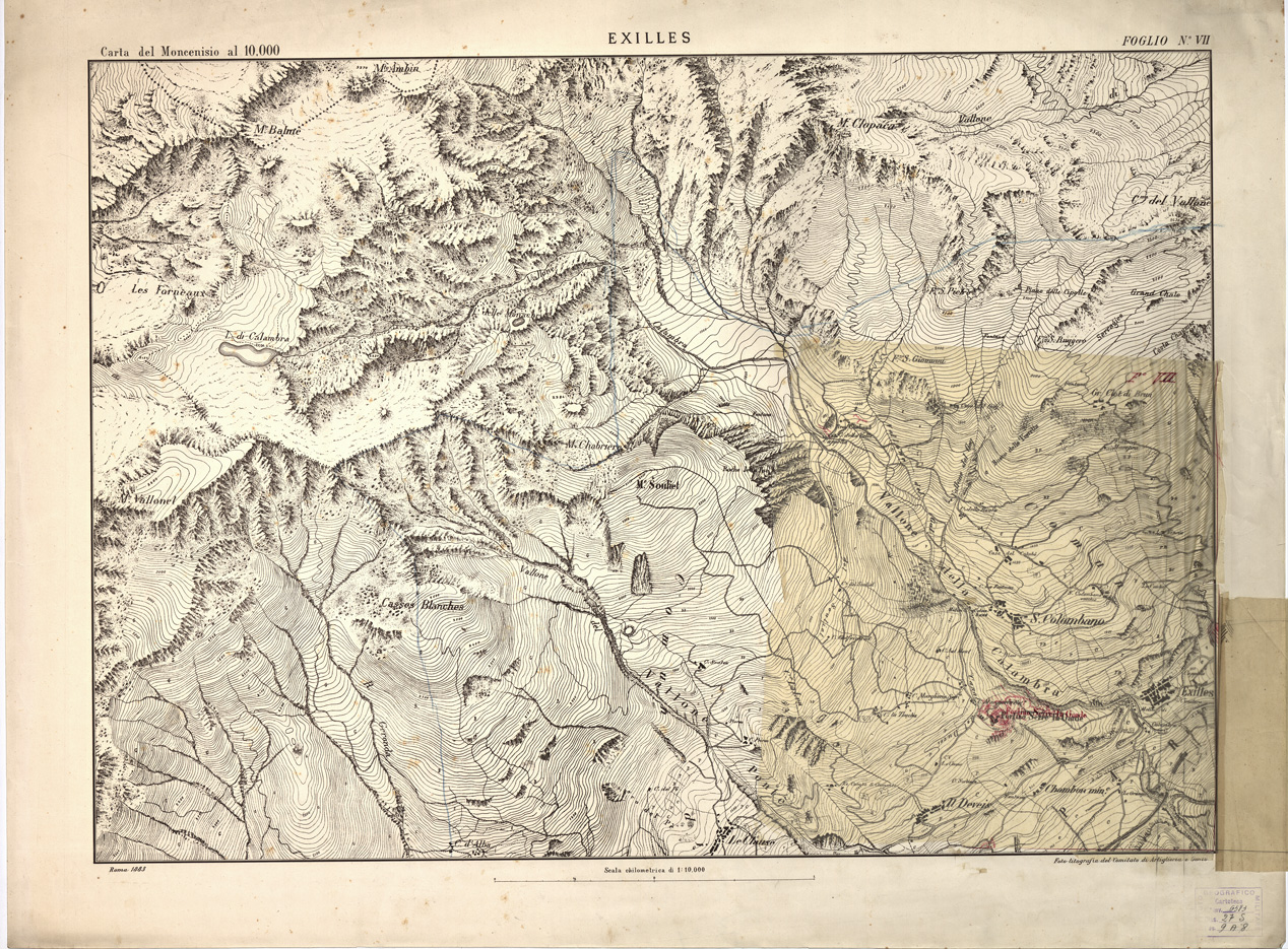 CARTA TOPOGRAFICA DEI FORTI DEL MONCENISIO, DI EXILLES E FENESTRELLE - Foglio 7 - Exilles (carta con velina)