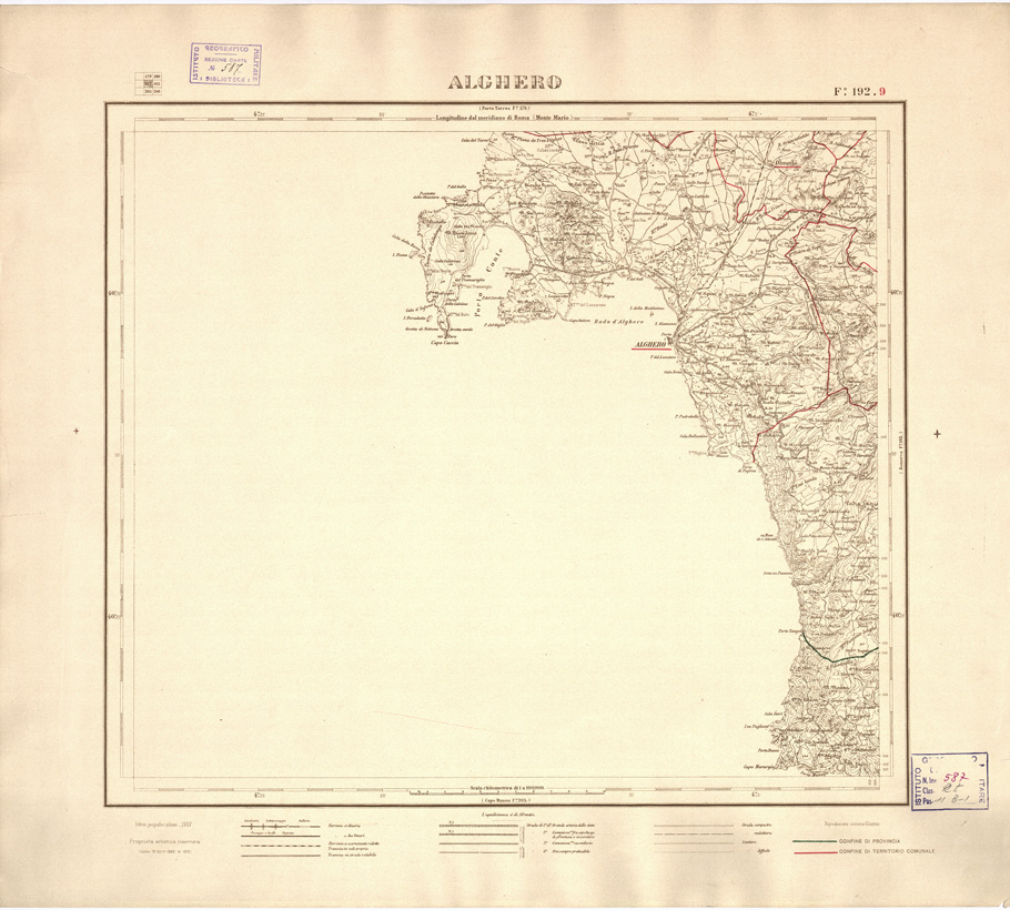 CARTA DELLE PROVINCIE DI CAGLIARI E SASSARI... - Foglio 192.9 - Alghero