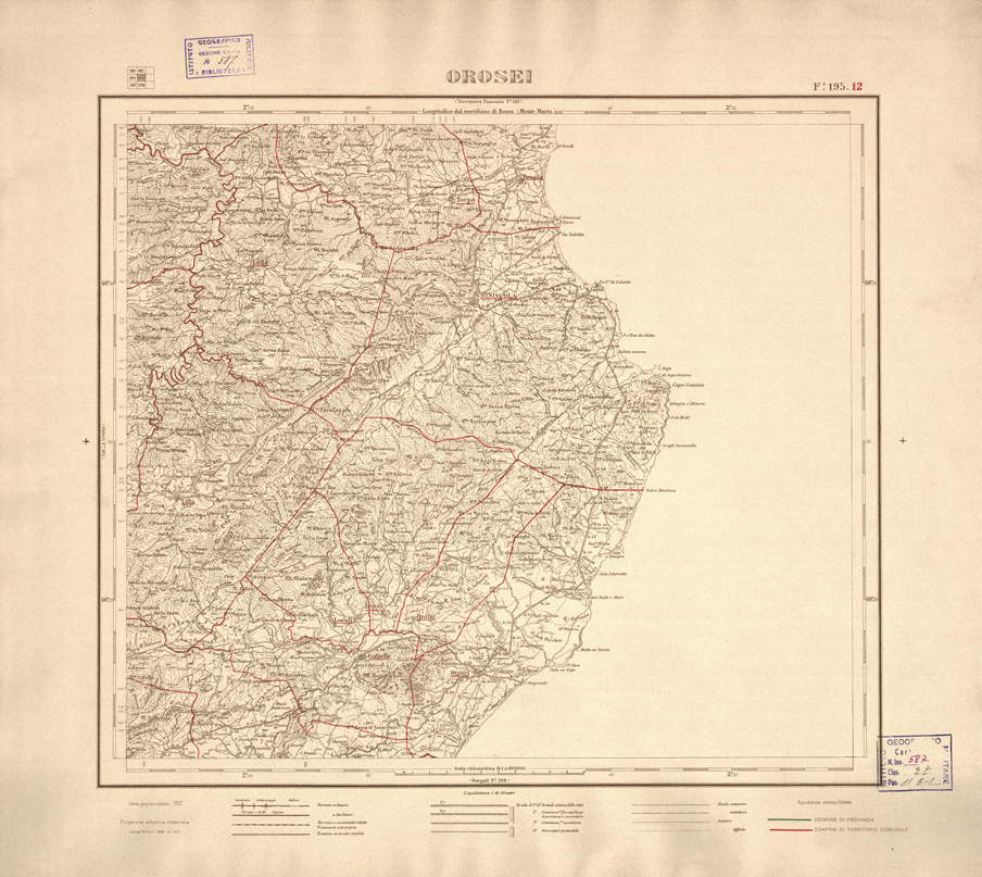 CARTA DELLE PROVINCIE DI CAGLIARI E SASSARI... - Foglio 195.12 - Orosei