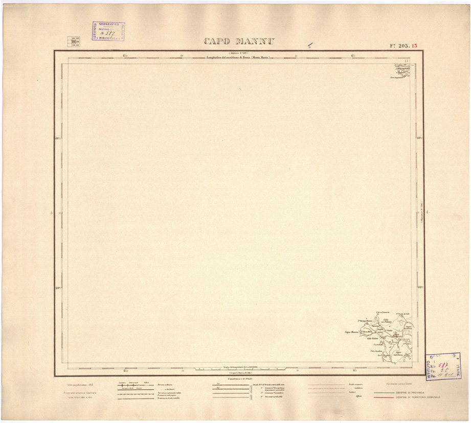 CARTA DELLE PROVINCIE DI CAGLIARI E SASSARI... - Foglio 205.13 - Capo Mannu