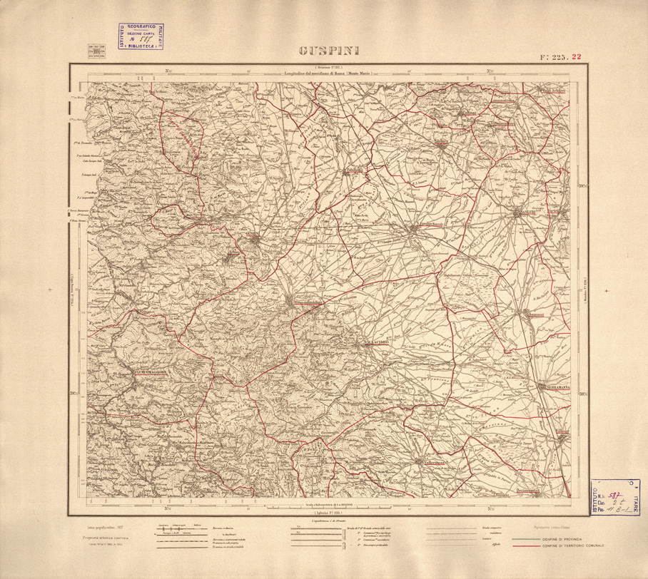 CARTA DELLE PROVINCIE DI CAGLIARI E SASSARI... - Foglio 225.22 - Guspini