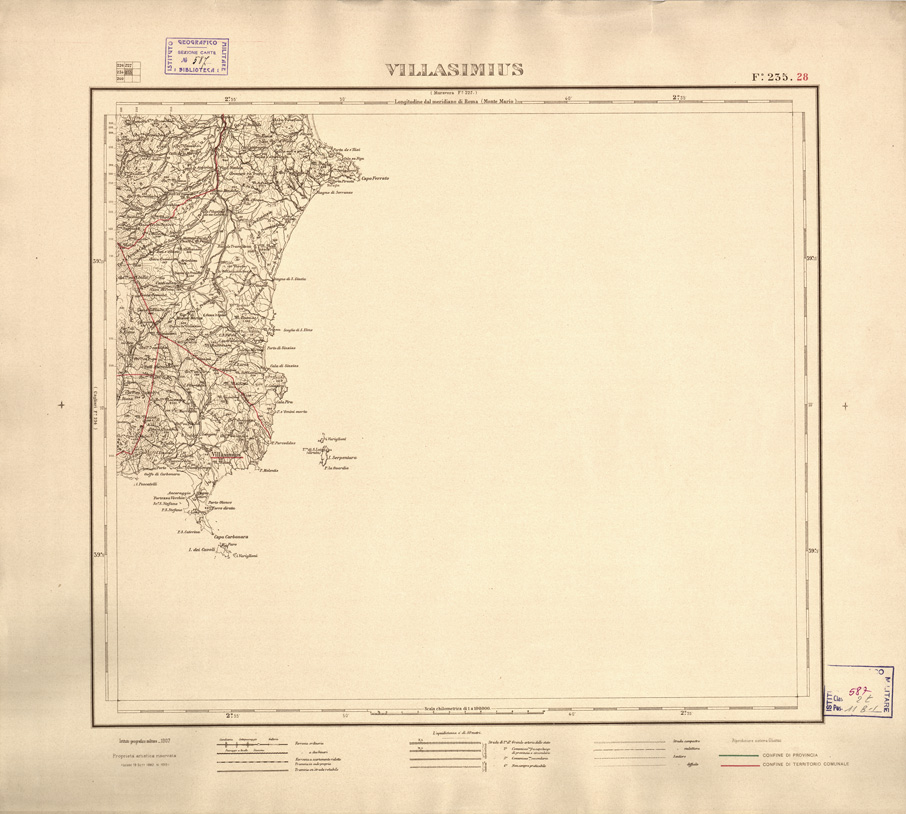 CARTA DELLE PROVINCIE DI CAGLIARI E SASSARI... - Foglio 235.28 - Villasimius