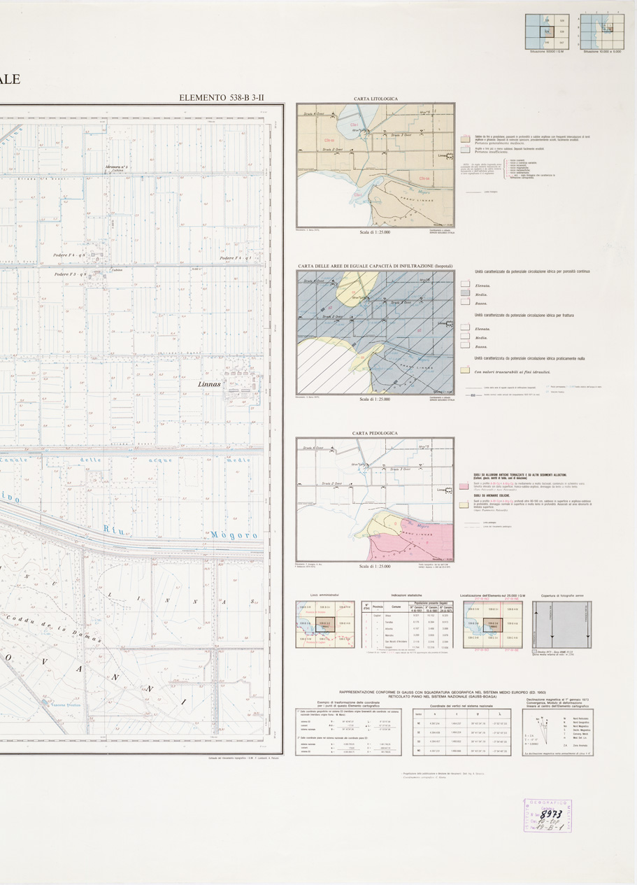 CARTA TECNICA DELL'ITALIA MERIDIONALE - INIZIO DEI RILIEVI SARDEGNA PER CONTO DELLA CASSA PER IL MEZZOGIORNO - Elemento 538-B3-II - Linnas (Oristano)