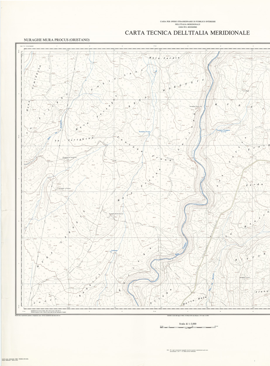 CARTA TECNICA DELL'ITALIA MERIDIONALE - INIZIO DEI RILIEVI SARDEGNA PER CONTO DELLA CASSA PER IL MEZZOGIORNO - Elemento 515-C1-III - Nuraghe Mura Procus (Oristano)