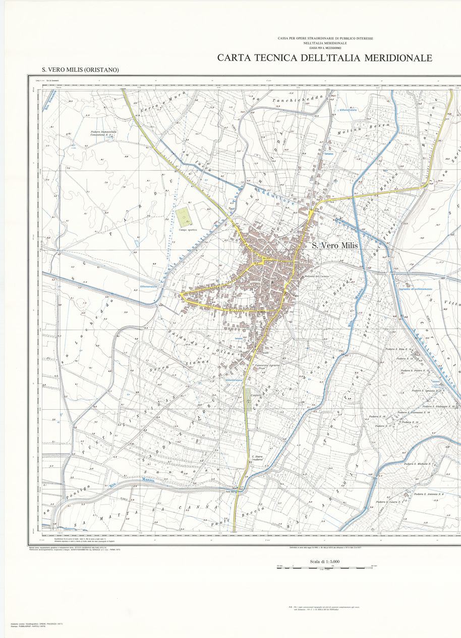 CARTA TECNICA DELL'ITALIA MERIDIONALE - INIZIO DEI RILIEVI SARDEGNA PER CONTO DELLA CASSA PER IL MEZZOGIORNO - Elemento 514-D4-III - S. Vero Milis (Oristano)