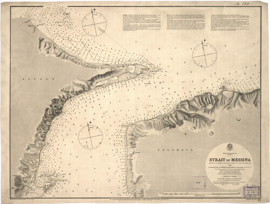 MEDITERRANEAN ITALY STRAIT OF MESSINA SURVEYED BY MR. DARONDEAU HYDROGRAPHIC ENGINEER FIRST CLASS IMP. FRENCH NAVY.