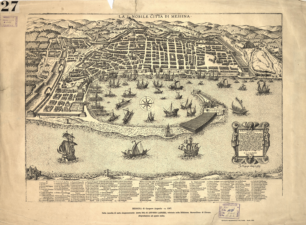 "Dalla raccolta di carte cinquecentesche (carta 361) di Antonio Lafreri, esistente nella Biblioteca Marucelliana di Firenze. (Riproduzione ad eguale scala). I.G.M. (FI) anno 1926."
