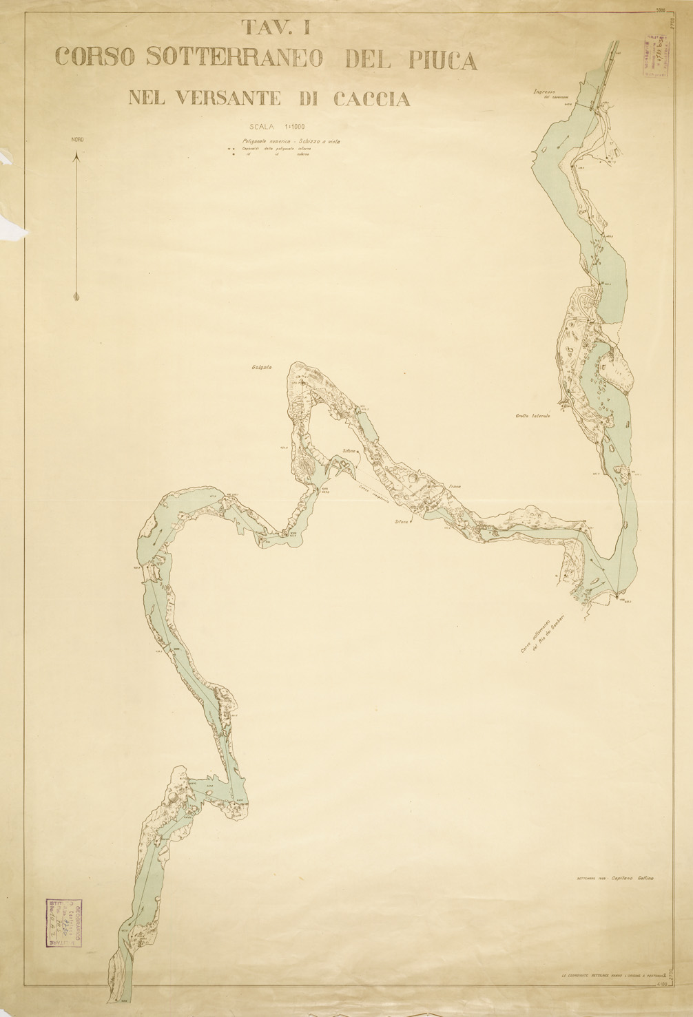 CORSO SOTTERRANEO DEL PIUCA DEL VERSANTE DI CACCIA - Tavola I
