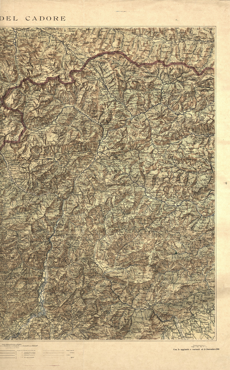 La “Grande Guerra” rallentò notevolmente l´attività topocartografica programmata e quasi tutte le energie dell´Istituto furono profuse per i lavori topografici di supporto alle operazioni militari. Dopo il trattato di pace i primi lavori cartografici riguardarono i territori redenti.