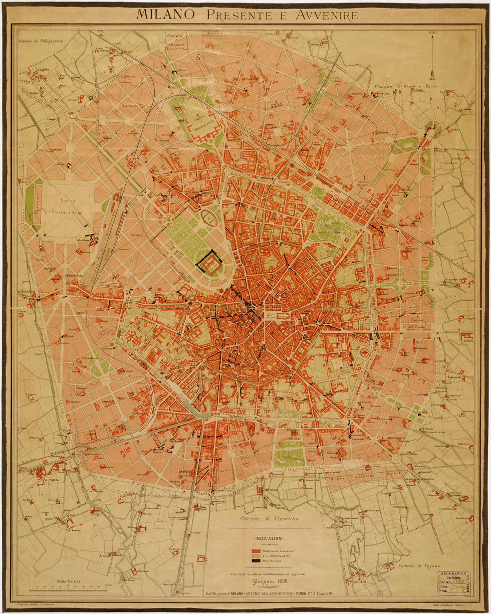 "La carta è montata su tela. Rappresentazione orografica planimetrica. Aut. e Ed. A. Vallardi - Milano."