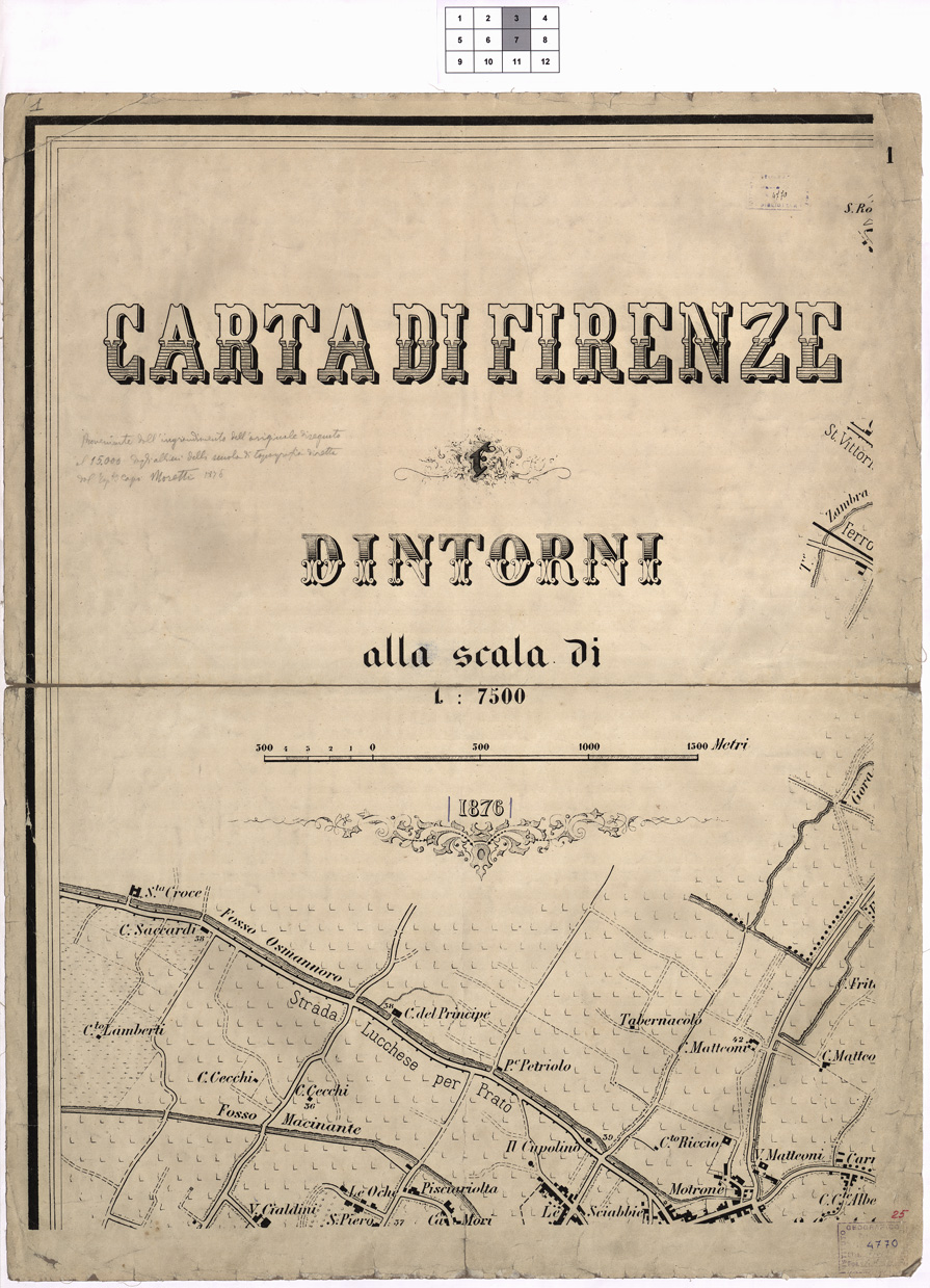 CARTA DI FIRENZE E DINTORNI ALLA SCALA DI 1:7.500. 1876. - Foglio 1