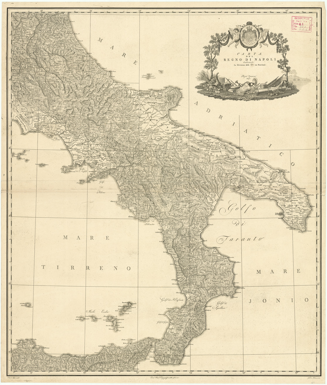 CARTA DEL REGNO DI NAPOLI INDICANTE LA DIVISIONE DELLE XV SUE PROVINCIE