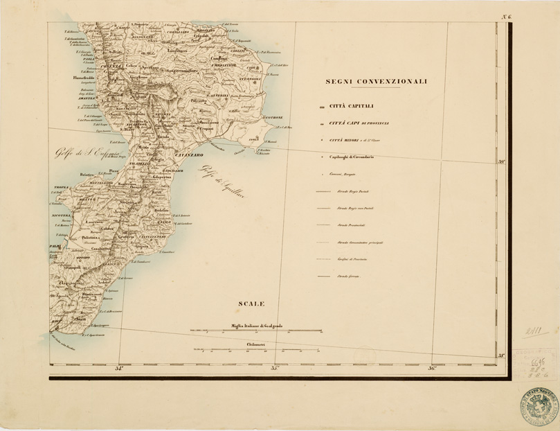 CARTA DELLE PROVINCIE MERIDIONALI D'ITALIA PUBBLICATA DALL'UFFICIO TOPOG. DEL R.L CORPO DI STATO MAGGIORE - Foglio 6
