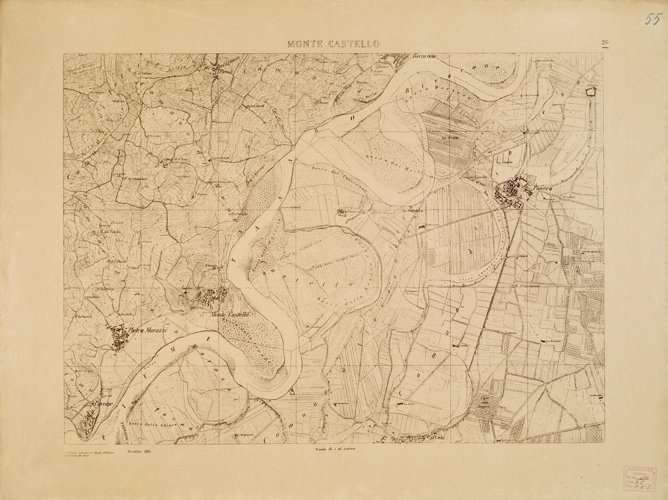 CARTA TOPOGRAFICA DELLA VALLE DEL PO' DA CASALE A PAVIA - Foglio 26 MONTE CASTELLO
