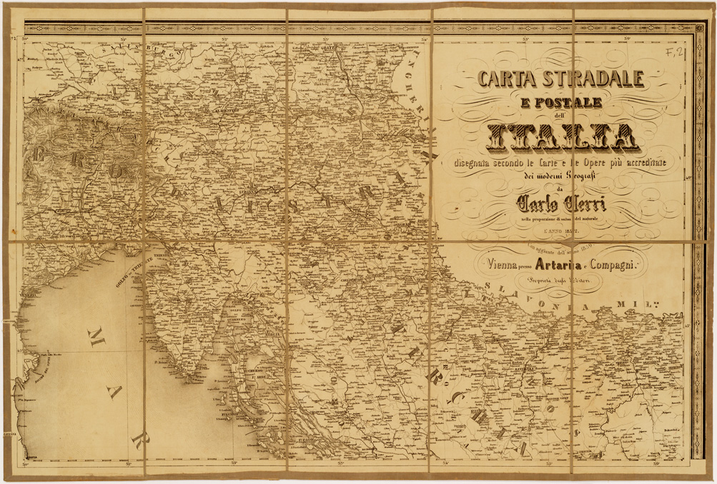 "...SECONDO LE CARTE E LE OPERE PIU´ ACCREDITATE DEI MODERNI GEOGRAFI. Autore Carlo Cerri. Rappresentazione orografica a tratteggio.Editore Artaria,luogo di edizione Vienna."