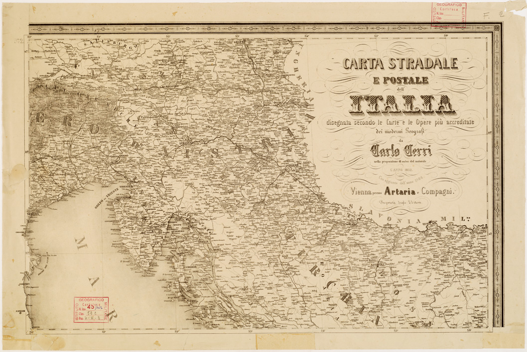 "...SECONDO LE CARTE E LE OPERE PIU´ ACCREDITATE DEI MODERNI GEOGRAFI. Autore Carlo Cerri. Rappresentazione orografica a tratteggio.Editore Artaria,luogo di edizione Vienna."