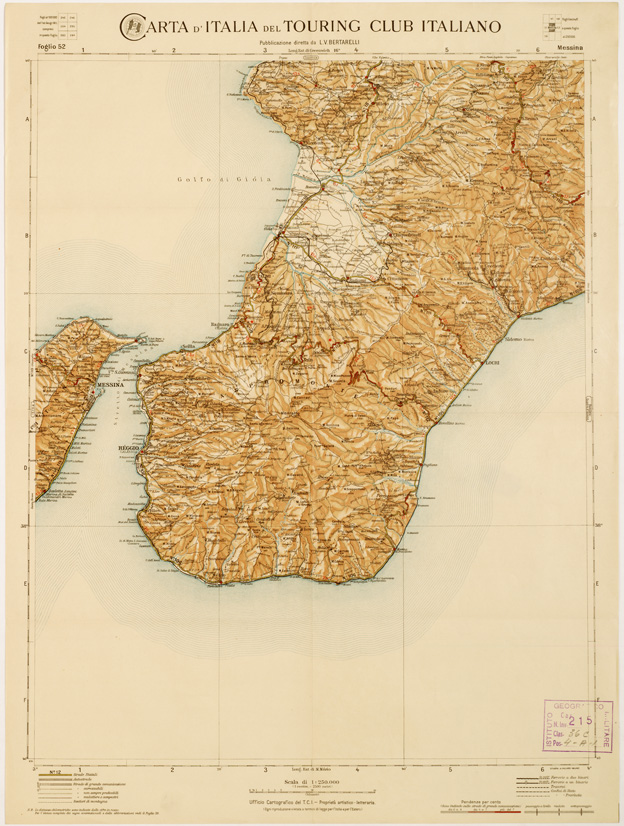 CARTA D'ITALIA DEL TOURING CLUB ITALIANO PUBBLICAZIONE DIRETTA DA L.V. BERTARELLI - Foglio 52 - Messina.