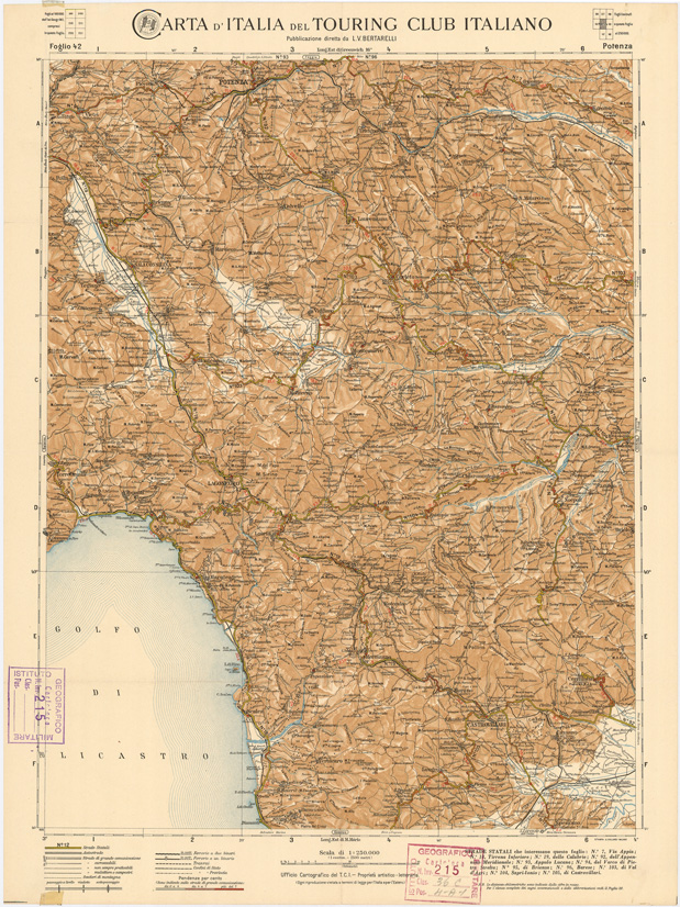 CARTA D'ITALIA DEL TOURING CLUB ITALIANO PUBBLICAZIONE DIRETTA DA L.V. BERTARELLI - Foglio 42 - Potenza.