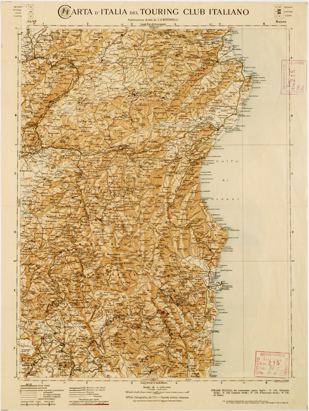 CARTA D'ITALIA DEL TOURING CLUB ITALIANO PUBBLICAZIONE DIRETTA DA L.V. BERTARELLI - Foglio 40 - Nuoro.
