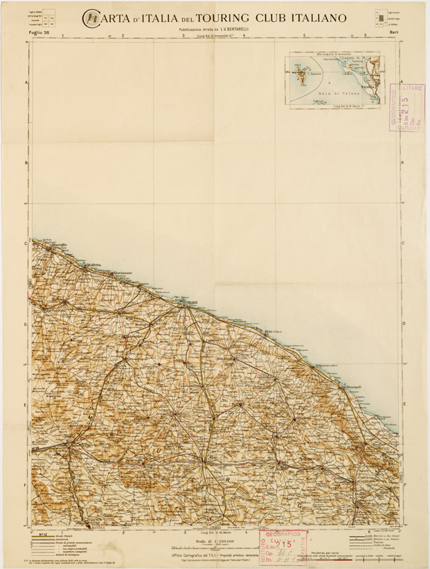 CARTA D'ITALIA DEL TOURING CLUB ITALIANO PUBBLICAZIONE DIRETTA DA L.V. BERTARELLI - Foglio 38 - Bari.