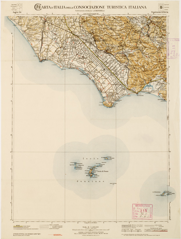 CARTA D'ITALIA DEL TOURING CLUB ITALIANO PUBBLICAZIONE DIRETTA DA L.V. BERTARELLI - Foglio 34 - Frosinone - Littoria.