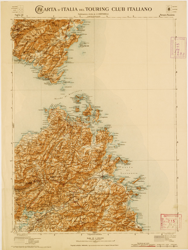 CARTA D'ITALIA DEL TOURING CLUB ITALIANO PUBBLICAZIONE DIRETTA DA L.V. BERTARELLI - Foglio 33 - Tempio Pausania.